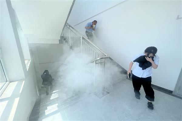 全體參會人員在安全生產(chǎn)月橫幅上承諾簽名。隨后,集團(tuán)邀請億安消防的教官作安全專項(xiàng)知識培訓(xùn),并組織應(yīng)急疏散演練。