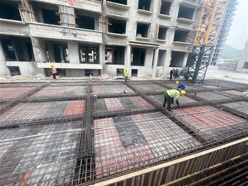 振興·龍澤灣建設(shè)項(xiàng)目地下室鋼筋安裝中。