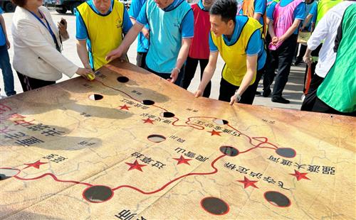 重走長征路項目,隊員們團(tuán)結(jié)一致,相互配合,巧渡金沙江、強(qiáng)渡大渡河、飛奪瀘定橋、爬雪山、過草地、最終勝利大會師,讓在場的每一位小伙伴都重“走”了一遍長征路,讓我們大家同心共筑了中國夢!