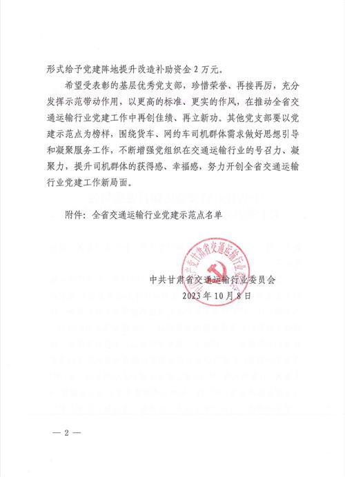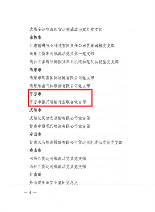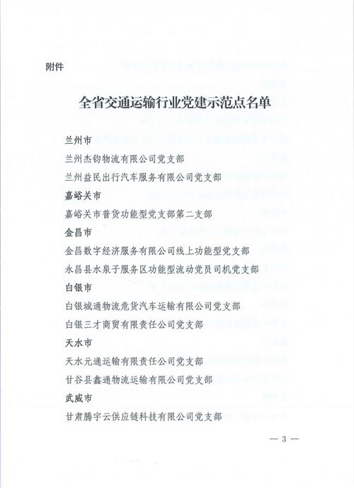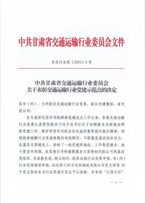 近日,平?jīng)鍪姓衽d運輸行業(yè)聯(lián)合黨支部被甘肅省交通運輸行業(yè)委員會授予“全省交通運輸行業(yè)黨建示范點”。