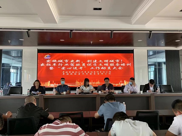 根據(jù)創(chuàng)建文明城市的總體部署和要求,為進一步鞏固提升交通運輸行業(yè)整體文明創(chuàng)建成果,進一步打造出租車的窗口形象,筑牢出租車行業(yè)安全防線。2022年5月30日下午,平?jīng)鍪械缆愤\輸管理局、交通綜合執(zhí)法隊深入振興出租公司、新能量網(wǎng)約車公司開展“實施城市更新,創(chuàng)建文明城市!出租車行業(yè)駕駛員優(yōu)質(zhì)文明服務培訓暨‘愛心送考‘工作動員大會”。同時召開5月份駕駛員安全例會暨端午節(jié)前安全工作部署會。