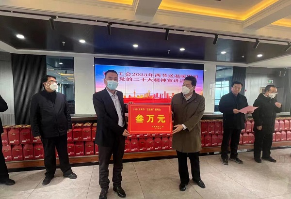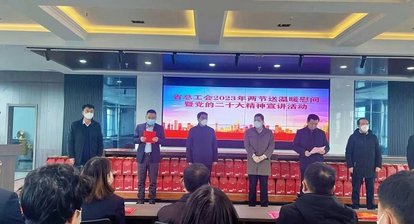 1月12日下午,省總工會(huì)黨組成員、經(jīng)審會(huì)主任馮繼波和平?jīng)鍪腥舜蟪N瘯?huì)黨組副書記、副主任、市總工會(huì)主席徐毅等一行深入振興集團(tuán)公司開(kāi)展2023年“兩節(jié)”送溫暖慰問(wèn)暨黨的二十大精神宣講活動(dòng)。振興集團(tuán)公司總經(jīng)理鄭虎出席參加此次慰問(wèn)活動(dòng)并發(fā)表了致辭。