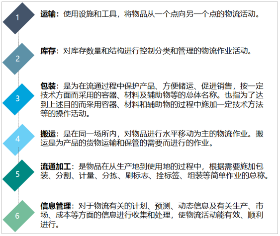 中國物流行業(yè)起步較晚,隨著國民經(jīng)濟(jì)的飛速發(fā)展,中國物流行業(yè)保持較快增長速度,物流體系不斷完善,行業(yè)運(yùn)行日益成熟和規(guī)范。具體內(nèi)容包括以下幾個(gè)方面:用戶服務(wù)、需求預(yù)測(cè)、訂單處理、配送、存貨控制、運(yùn)輸、倉庫管理、工廠和倉庫的布局與選址、搬運(yùn)裝卸、采購、包裝、情報(bào)信息。